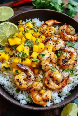 Délicieux bol de riz aux crevettes et mangue pour l’été